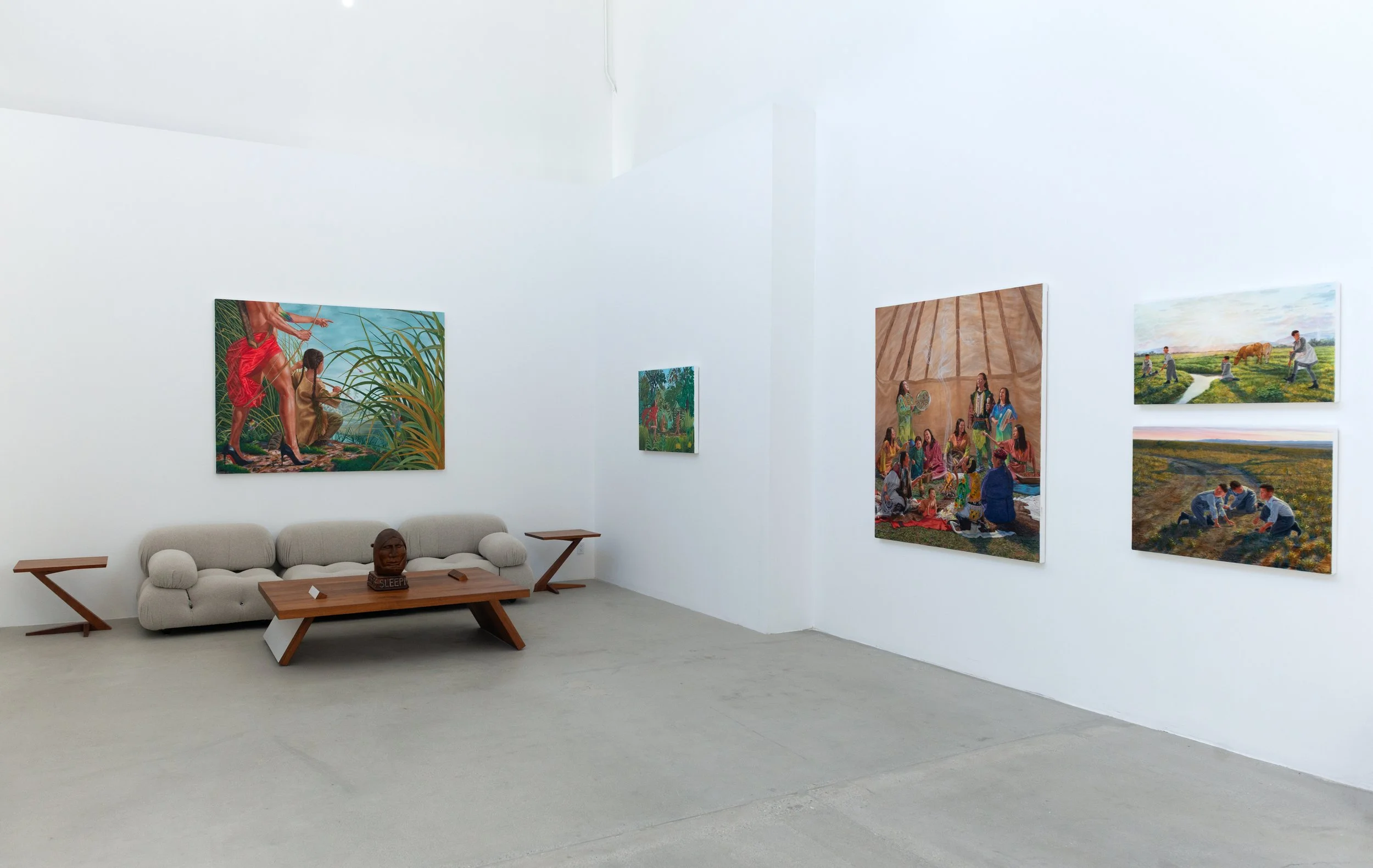 Bringing together an intergenerational group of leading Indigenous artists - including Cara Romero, Kent Monkman, Cannupa Hanska Luger, David Bradley, Jaune Quick-to-See Smith, Rick Bartow, Fritz Scholder, T.C. Cannon, Richard Glazer-Danay, Pop Chalee, Rose Simpson, Bob Haozous, Nicholas Galanin, Will Wilson, Craig George and Chris Pappan - the exhibition foregrounds Indigenous voices as central authors of American history rather than its subjects. Romero's monumental portraits assert presence and contemporary identity, while Monkman's expansive history paintings overturn colonial narratives with wit, scale and theatrical command. Across painting, sculpture, photography, and mixed media, the broader group of artists extends this conversation - probing myth, memory, land, humor, spirituality and political reality with urgency and range.
