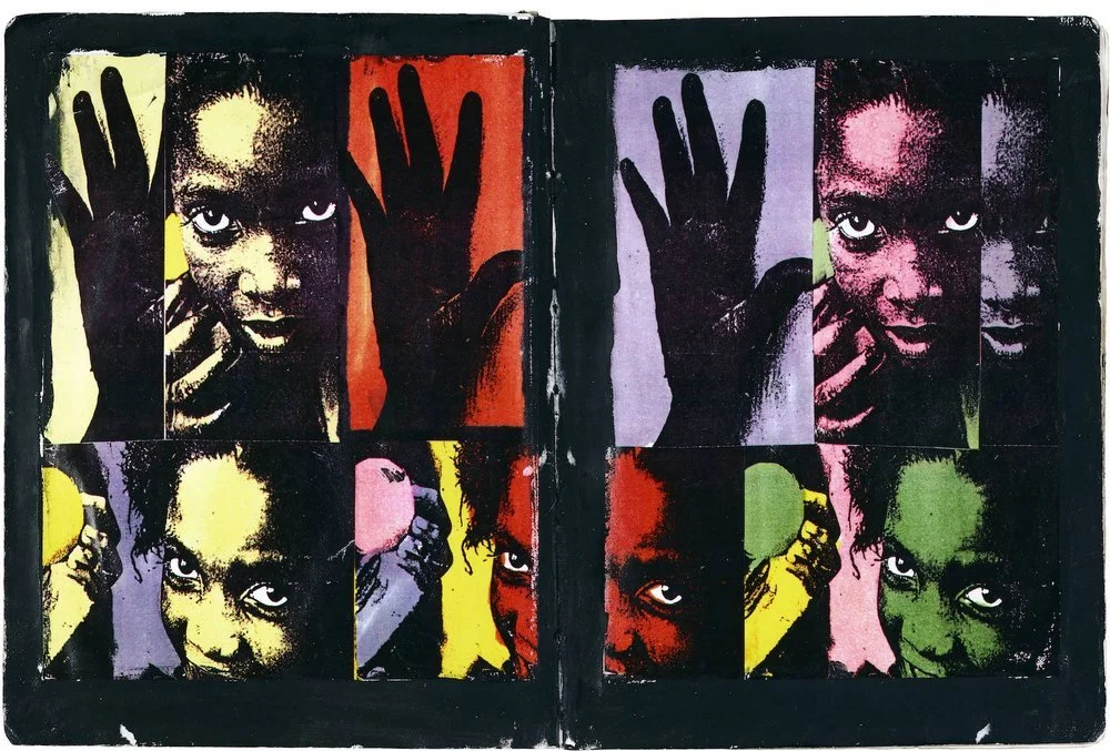 Eldon’s personal story as a photojournalist and activist, working to tell stories of war and famine, has ignited countless people to action since his death in Somalia in 1993. This tragedy made headlines around the world – Eldon was 22 years old. During his short life, Eldon created 17 journals filled with vibrant collages of his adventures and thoughts. Originally inspired by his friendship with Peter Beard, and later his love for Basquiat and Rauschenberg, Eldon’s journals are filled with the musings of a creative genius.